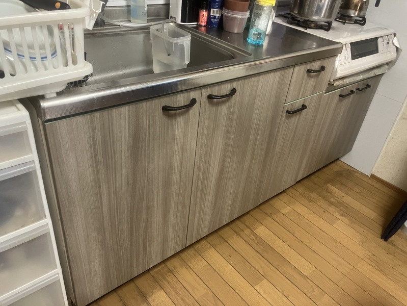 薄いグリーンの様な感じの扉でした。 端面が剥がれてきているのでシート貼り替えになりました。