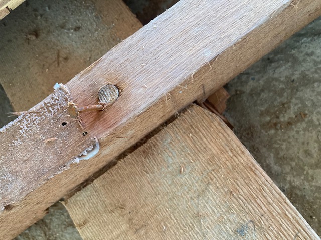 Home スタッフブログ クギ クギ 2025.11.10 三吉 床からギーギー音が響くので開けてみました。 大引と根太を縫い合わせてるクギからクギが生えてました。この物件も色んなところにアラがありました。