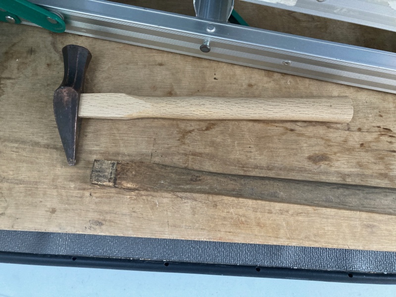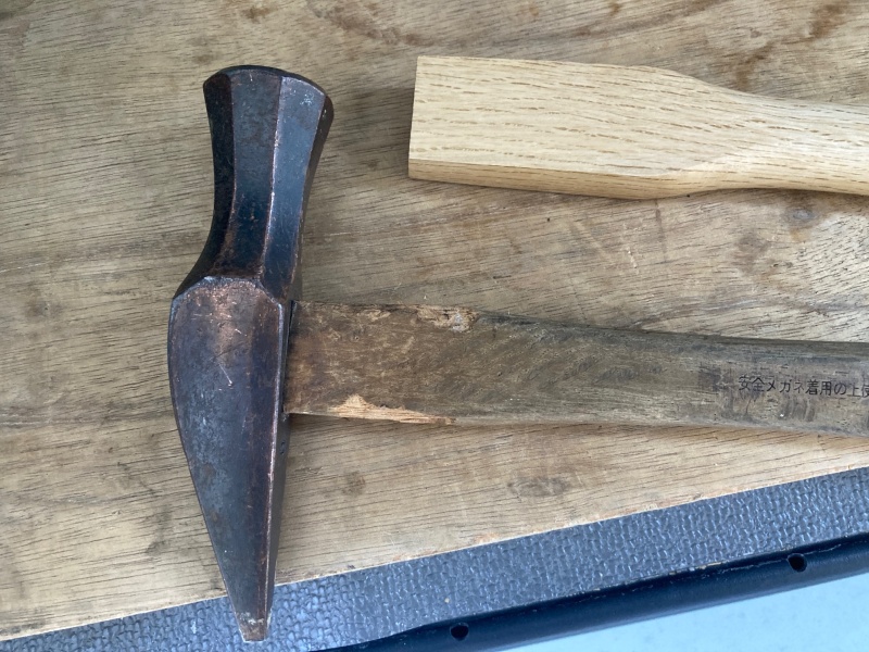 Home スタッフブログ 金槌の柄の交換 金槌の柄の交換 2026.02.4 スタッフ:クロス屋 長い付き合いの金槌です。 少なくとも10年は使っています。 とある作業で柄を痛めて、割れ初めていました。 金槌のアタマを外して、穴に合わせて新しい柄の先を削りました。 少し時間はかかりましたが、キレイに合わせられたと思います。