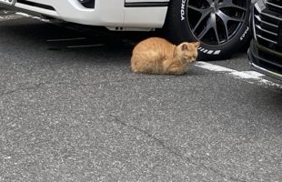 とある現場の近所のコインパーキングに「主」が居ました。 現場に着いて道具を…