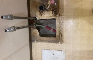 洗面化粧台を外したら穴が… これで後はCFを貼ってもらいます …